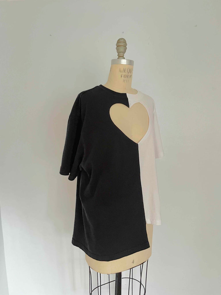 One-of-a-Kind Black & White Split T-Shirt with Heart Cut-Out | Sarah Aphrodite