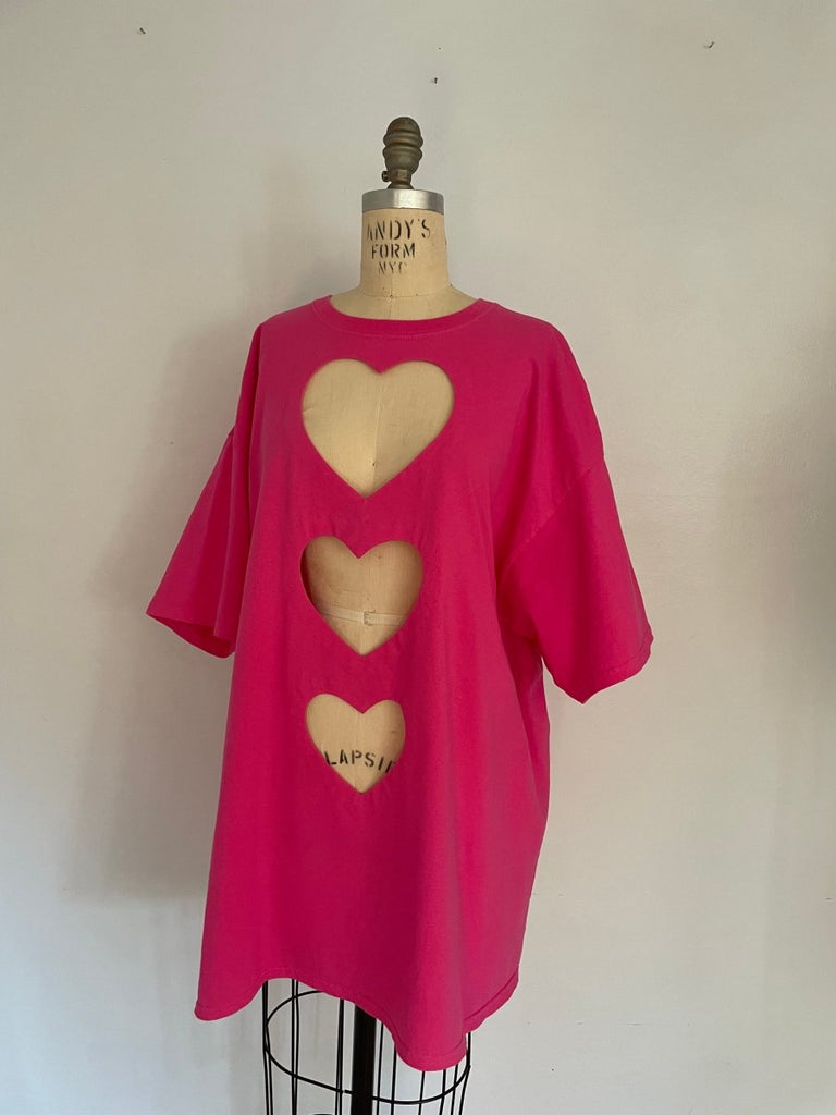 MAGENTA TRIPLE HEART CUT OUT TEE